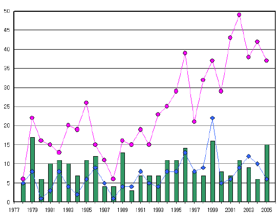 | 연도 | 78 | 79 | 80 | 81 | 82 | 83 | 84 | 85 | 86 | 87 | 88 | 89 | 90 | 91 | 92 | 93 | 94 | 95 | 96 | 97 |
